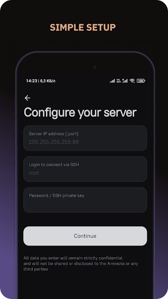 Приложение поддерживает различные VPN-протоколы и позволяет экспортировать конфигурации для использования в альтернативных клиентах, таких как WireGuard или OpenVPN Connect. Настройка осуществляется через простой мастер установки — достаточно ввести IP-адрес сервера и root-пароль.