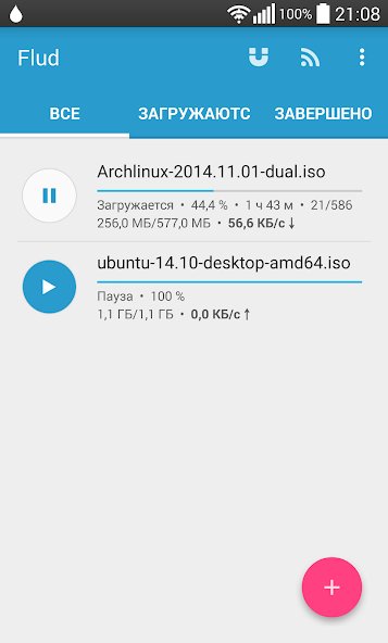 Flud+ — это быстрый и удобный торрент-клиент для Android. Он позволяет загружать и раздавать файлы через BitTorrent прямо с вашего смартфона. У приложения простой, современный и интуитивно понятный интерфейс. Flud подходит как для новичков, так и для опытных пользователей.