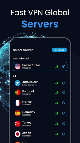 Приложение выделяется простым интерфейсом и моментальным подключением к серверам по всему миру. Основная особенность заключается в автоматическом выборе оптимального узла, что позволяет избежать задержек и перегрузок. Пользователь может вручную выбрать страну, активировать защиту одним касанием и отслеживать статус соединения в реальном времени.