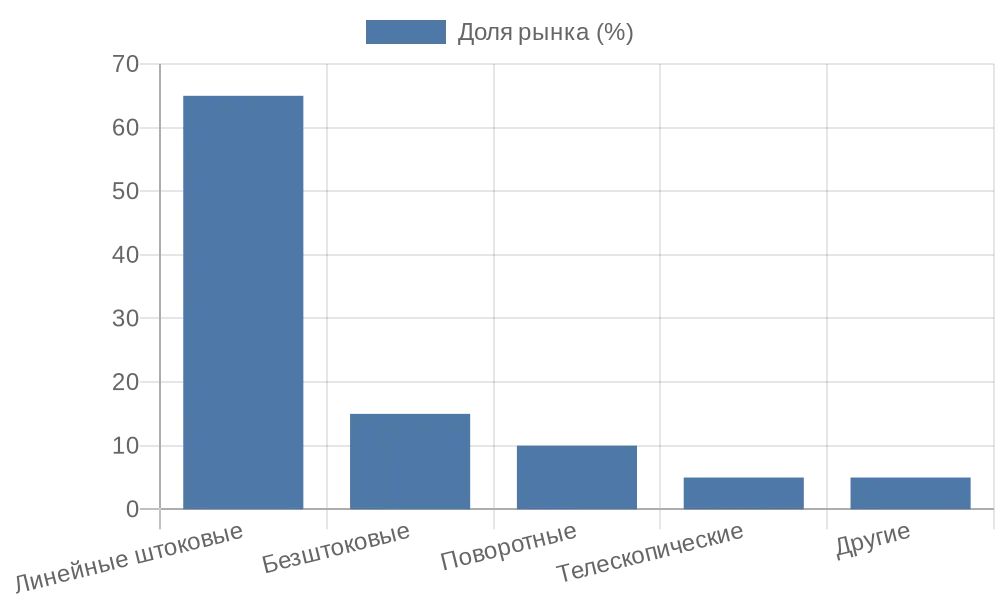 Для анализа распределения по применениям вот диаграмма, показывающая долю каждого типа в промышленных системах. Данные основаны на обобщенных отчетах рынка, где линейные доминируют, но специализированные набирают обороты.