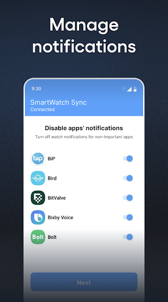 Главное преимущество — универсальность. Вместо фирменных приложений с жёсткой привязкой SmartWatch Sync Wear даёт единый интерфейс для уведомлений, звонков и настроек. Можно выбрать, какие программы отправляют оповещения, задать вибрацию для разных событий или заблокировать лишние сервисы одним тапом.
