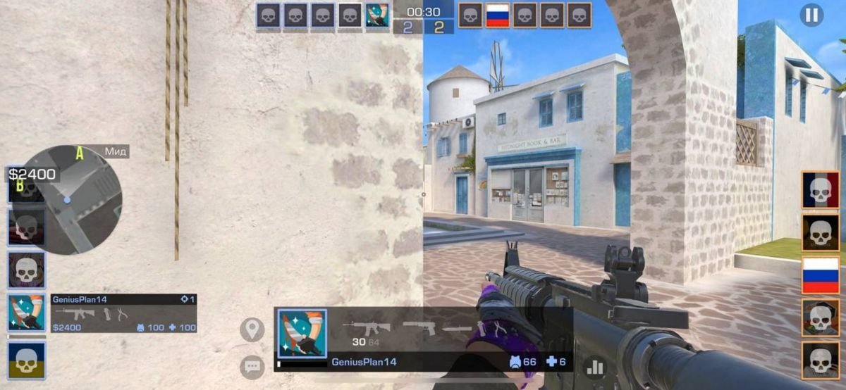 Геймплей как в Standoff 2: deathmatch, бомба, захват флага, но с приваткой — выбирай серверы, настраивай читы (aim, wallhack на легите), фарми голду без гринда. Улучшенная графика, новые скины оружия и персонажей, стабильные 60 FPS даже на средних девайсах. Управление стандартное — джойстик + кнопки, с русской локализацией и оффлайн-тренировками.