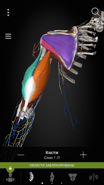 Вы можете снимать с модели слой за слоем: начиная с кожи и мышц, переходя к скелету, кровеносной системе и внутренним органам. Каждый элемент снабжён подробной текстовой справкой с латинскими названиями. Есть режим викторины, где нужно находить указанные органы или кости, что превращает учёбу в увлекательную игру.
