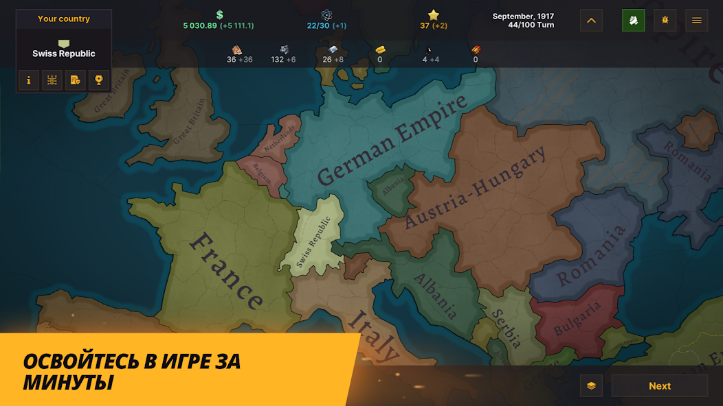 Геймплей сфокусирован на управлении экономикой, научными исследованиями и дипломатией. Игроку необходимо выбирать политический строй — от демократии до авторитаризма, что напрямую влияет на доступные технологии и бонусы. Боевая система требует тактического мышления: нужно учитывать снабжение войск и рельеф местности при планировании захвата новых территорий.