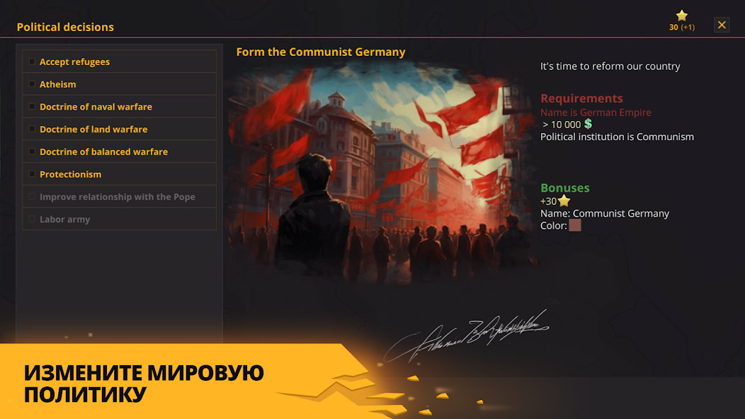 Основная особенность игры заключается в гибком редакторе сценариев и карт. В отличие от многих конкурентов, Warnament предоставляет инструменты для создания собственных политических реальностей, где пользователи могут менять границы, настраивать союзы и формировать уникальные условия для каждого сражения.