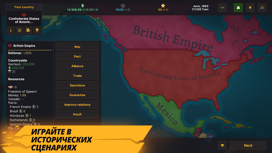 Warnament на Android предлагает глубокий стратегический опыт для любителей истории и глобального планирования, превращая каждое решение в важный шаг на пути к мировому господству.