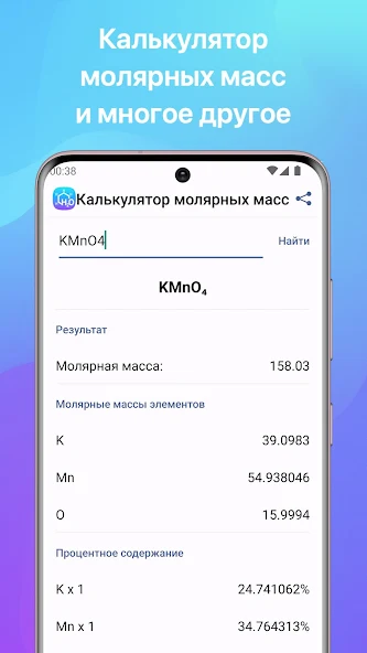 Приложение «Химия» — это комплексный инструмент для школьников и студентов, объединяющий решатель химических уравнений с мощной справочной базой. В отличие от игровых симуляторов вроде Chemist, оно фокусируется на практической помощи в учёбе: автоматически балансирует сложные реакции, рисует структурные формулы органических соединений и рассчитывает молярные массы соединений.