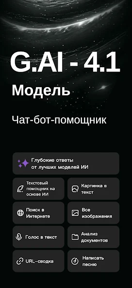 G.AI — AI Chat Assistant представляет собой универсальный инструмент для работы с текстовой информацией и генерации идей. Это многофункциональное приложение на Android объединяет в себе возможности продвинутого чат-бота и персонального ассистента, способного решать задачи любой сложности: от написания кода до составления планов тренировок.