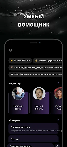 Основная особенность приложения заключается в его адаптивности под конкретные роли. Вместо стандартного чата пользователь получает доступ к набору специализированных шаблонов и контекстных настроек, которые позволяют ИИ мгновенно переключаться между режимами эксперта по маркетингу, корректора или творческого писателя.