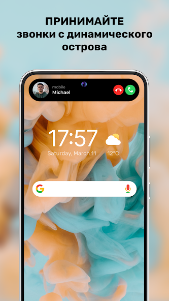 Функционал позволяет управлять воспроизведением музыки, отслеживать уровень заряда аккумулятора и отвечать на звонки прямо через активную область в верхней части экрана. Программа поддерживает тонкую настройку координат и размеров, что гарантирует точное совмещение программного интерфейса с физическим вырезом фронтальной камеры вашего устройства.