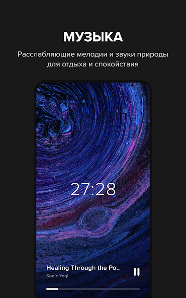 Функционал включает гибкий таймер с аутентичными звуками тибетских чаш, позволяющий настраивать интервалы и фоновое сопровождение. Пользователи могут выбирать практики по тематикам: от борьбы с тревожностью до развития концентрации. Система трекинга прогресса наглядно отображает ежедневную активность и помогает формировать устойчивую привычку к медитации.