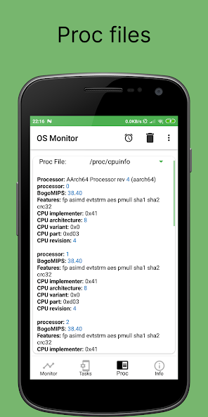 OS Monitor: диспетчер задач - это мощный системный инструмент для глубокого мониторинга состояния смартфона. Это приложение на Android позволяет пользователю заглянуть под капот операционной системы и детально изучить работу всех фоновых процессов в режиме реального времени.
