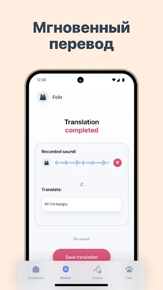 Cat Translator — это оригинальное развлекательное приложение на Android, которое стирает границы между человеком и его домашним питомцем. Программа имитирует переводчик, превращая человеческую речь в забавные звуки кошачьего мяуканья и наоборот. Основная суть проекта заключается в создании игрового взаимодействия с кошкой через аудиовизуальные эффекты.