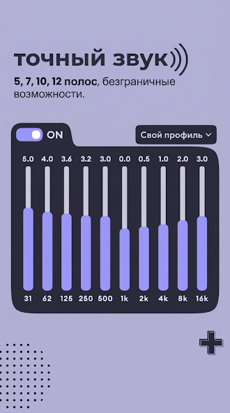 Визуальное исполнение приложения радует минималистичным интерфейсом с плавными анимациями. Темная тема не только экономит заряд устройства, но и подчеркивает современный стиль утилиты. Управление реализовано через интуитивно понятные слайдеры, что делает процесс калибровки звука быстрым и комфортным в любых условиях.